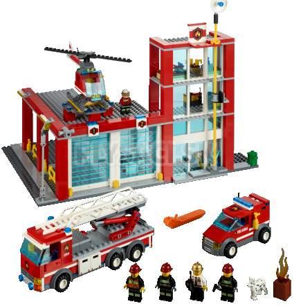 Na hasičskej stanici LEGO® City vládne pokoj. Veliteľ hasičov usrkáva kávu vo svojej kancelárii, jeden hasič medzitým opravuje auto a druhý si doprial zaslúžený spánok. Len čo sa rozozvučí poplašný signál, vrhni sa do akcie! Skĺzni s hasičmi dolu po tyči, nalož ich do hasičského auta, dodávky a helikoptéry a vydaj sa zachraňovať LEGO City! Táto mohutná budova s 3 vozidlami, veľkými priehľadnými oknami a 2 sťahovacími garážovými dverami ponúka kopec zábavy. Obsahuje 5 mini figúrok: veliteľa hasičov, pilota a 3 hasičov s rôznymi doplnkami.