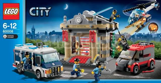 Pri trúfalom polnočnom prepadnutí sa do múzea v LEGO® City vlámu strešným oknom zlodeji. Kým sa im ale podarí uniknúť s cennými pokladmi, zavadia o laserový lúč. Nedovoľ im vyliezť po lane na strechu a utiecť! Nespusť ich z dohľadu, stráž ich pomocou reflektoru - LEGO® svetelné kocky - patriacemu helikoptére elitnej polície, pokiaľ nedorazí dodávka elitnej polície a nezatkne ich! Pošli drzých zlodejov pod zámok a zabav im ukradnuté poklady skôr, ako sa im podarí utiecť v dodávke! Obsahuje 6 mini figúrok: 2 zlodejov, pilota elitnej polície, šoféra a 2 príslušníkov elitnej polície s rôznymi doplnkami.