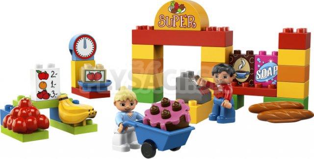 V supermarkete je stále plno. Majú tu toľko vecí – banány, chlieb, tortu, mydlo, kávu aj jahody. Pokladníčka bude mať pri účtovaní plné ruky práce. Kocky, figúrky i prvky DUPLO sú pestrofarebné, bezpečné a pevné pre malé rúčky a veľkú fantáziu.