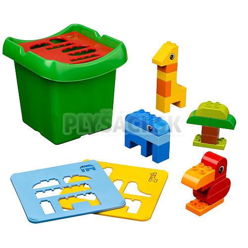 Stimulujte myslenie svojho dieťaťa pomocou tejto skvelej tvorivej súpravy LEGO DUPLO na rozlišovanie tvarov. Súprava obsahuje 23 základných a oblých kociek v rôznych farbách a naviac 3 rozlišovacie dosky v modrej, žltej a červenej farbe, ktoré pomôžu deťom rozdeliť kocky podľa tvarov a postaviť roztomilého papagája, slona a žirafu. Rozlišovacie dosky môžu tiež poslúžiť ako veko pevného boxu na kocky.